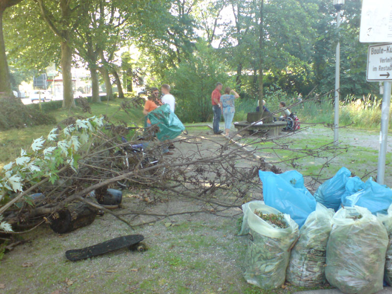 Zum zweiten Mal in diesem Jahr trafen sich die Angelfreunde zum Renigen des Ehrenmalteichs, dessen Pate sie sind. Ohne ihre Jugendabteilung war die Arbeit in gemeinschaftlicher Anstrengung zwischen 10 und 12:30 verrichtet.